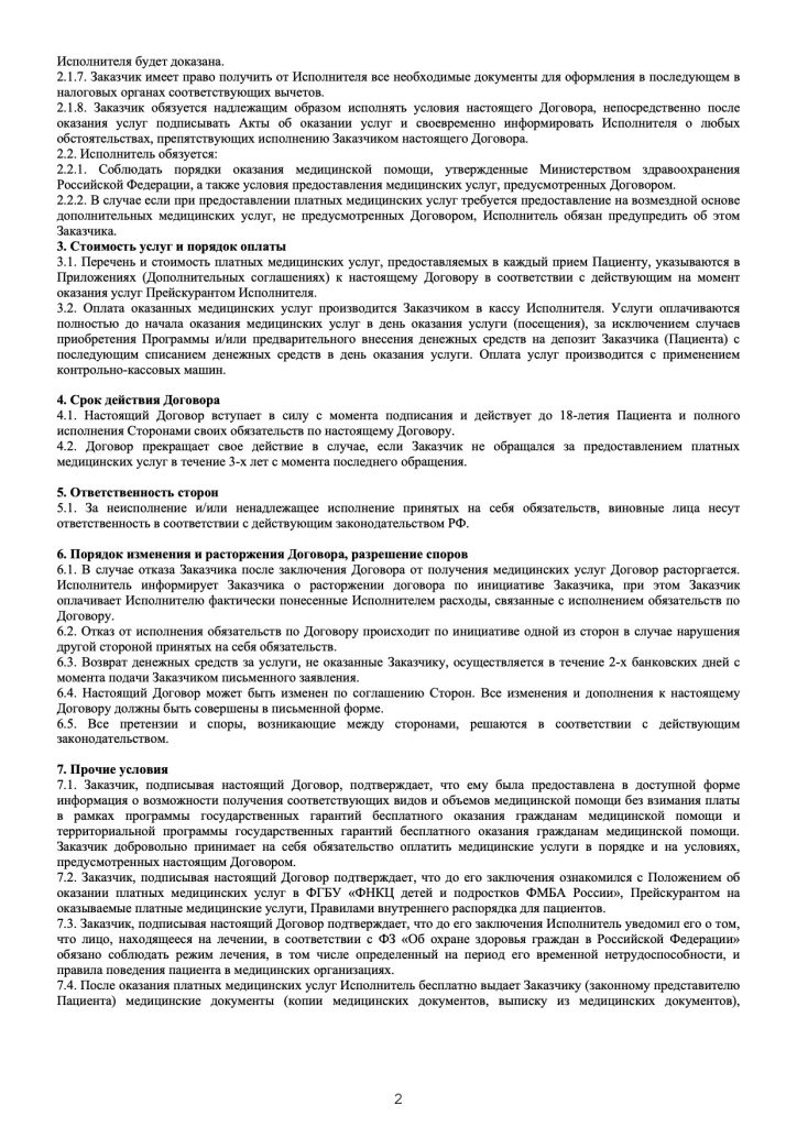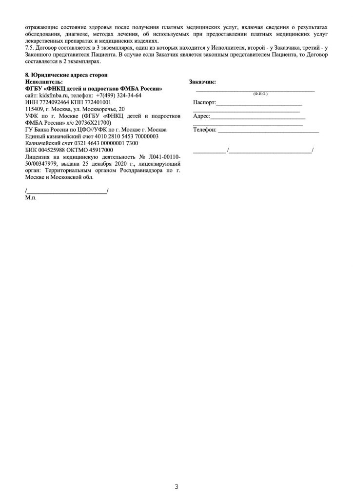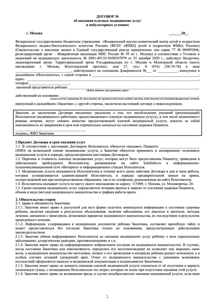 Бланк договора на оказание платные медицинских услуг в амбулаторных условиях