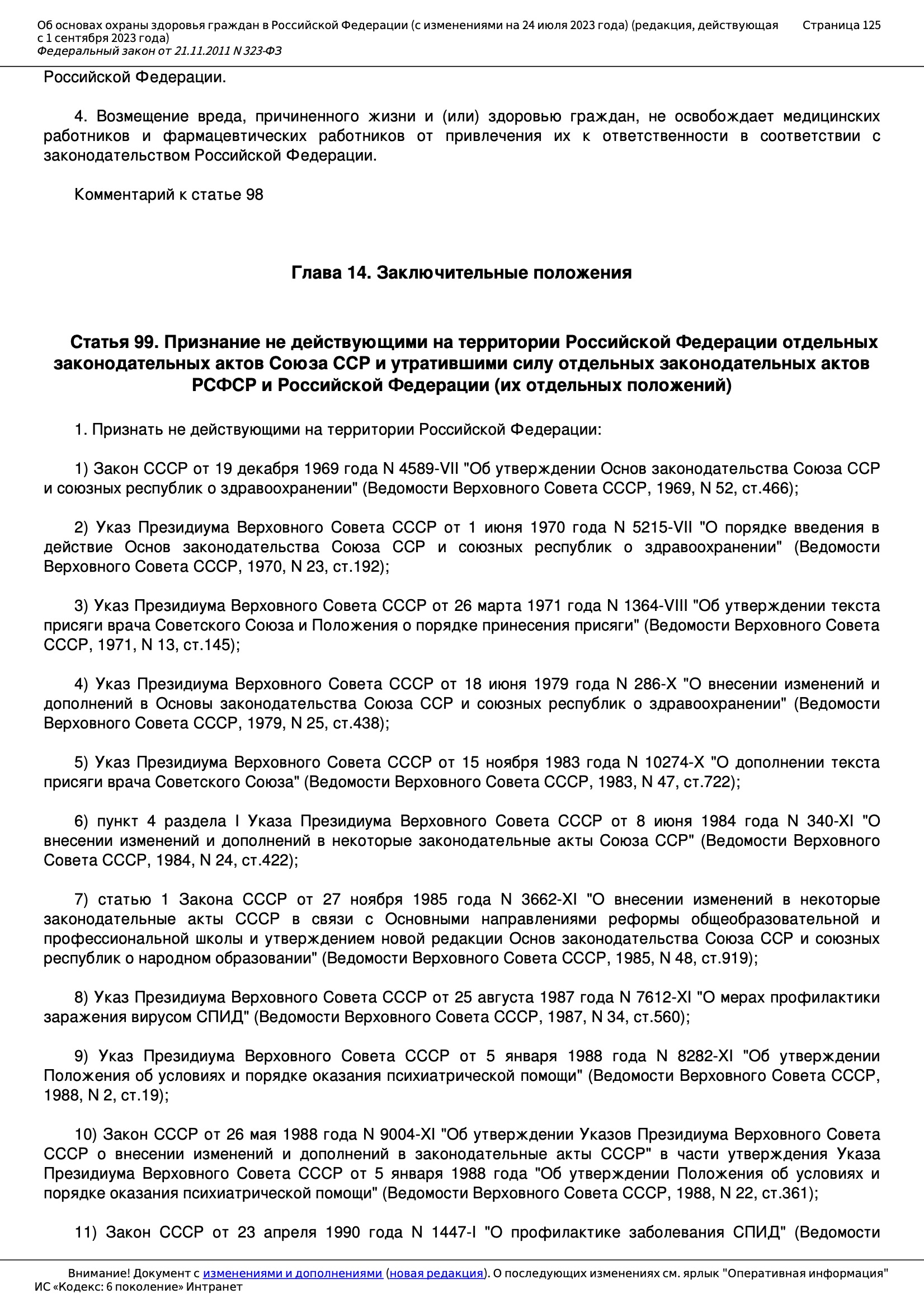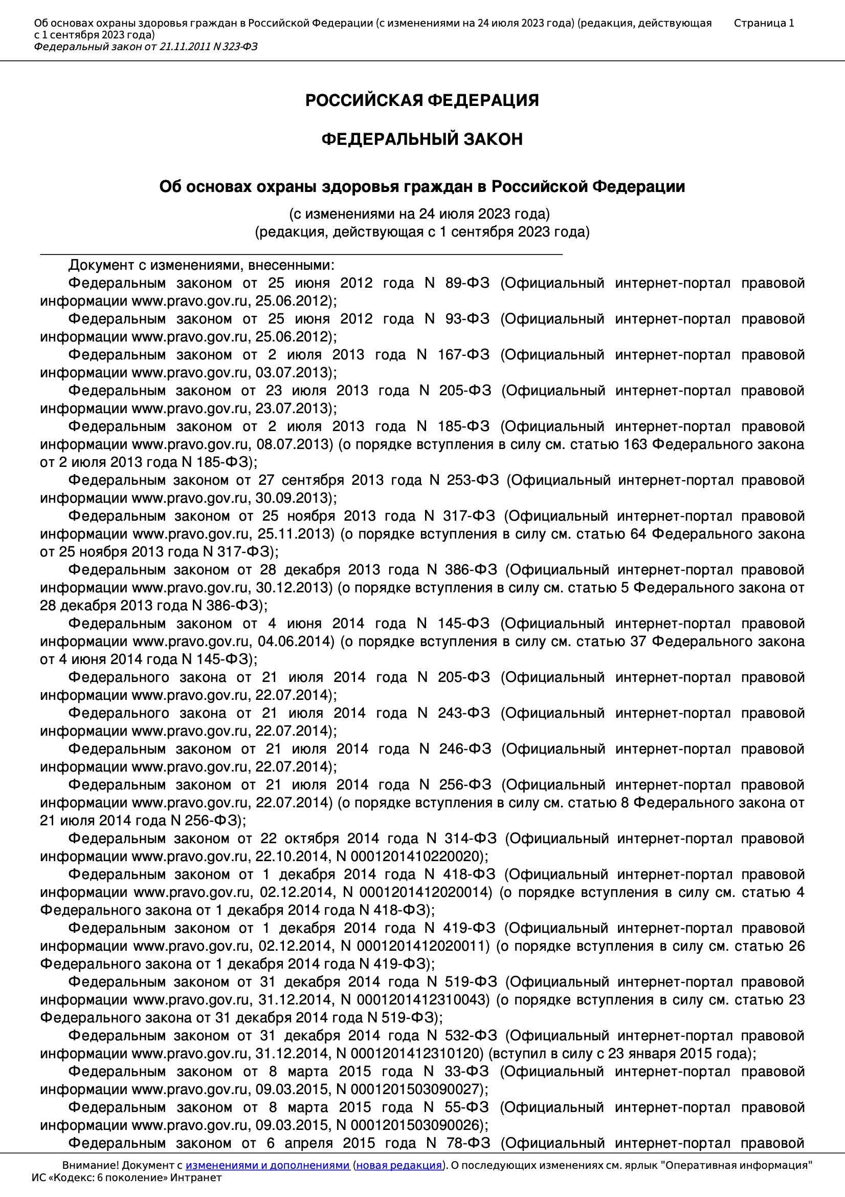 Федеральный закон Об основах охраны здоровья граждан в Российской Федерации
