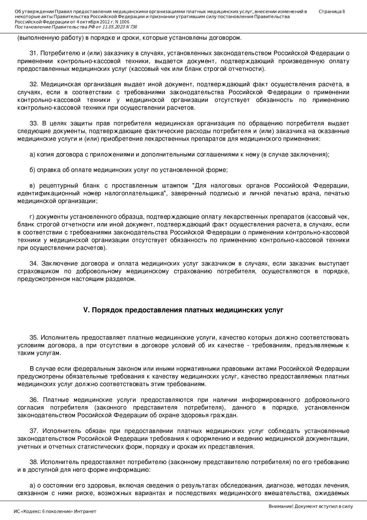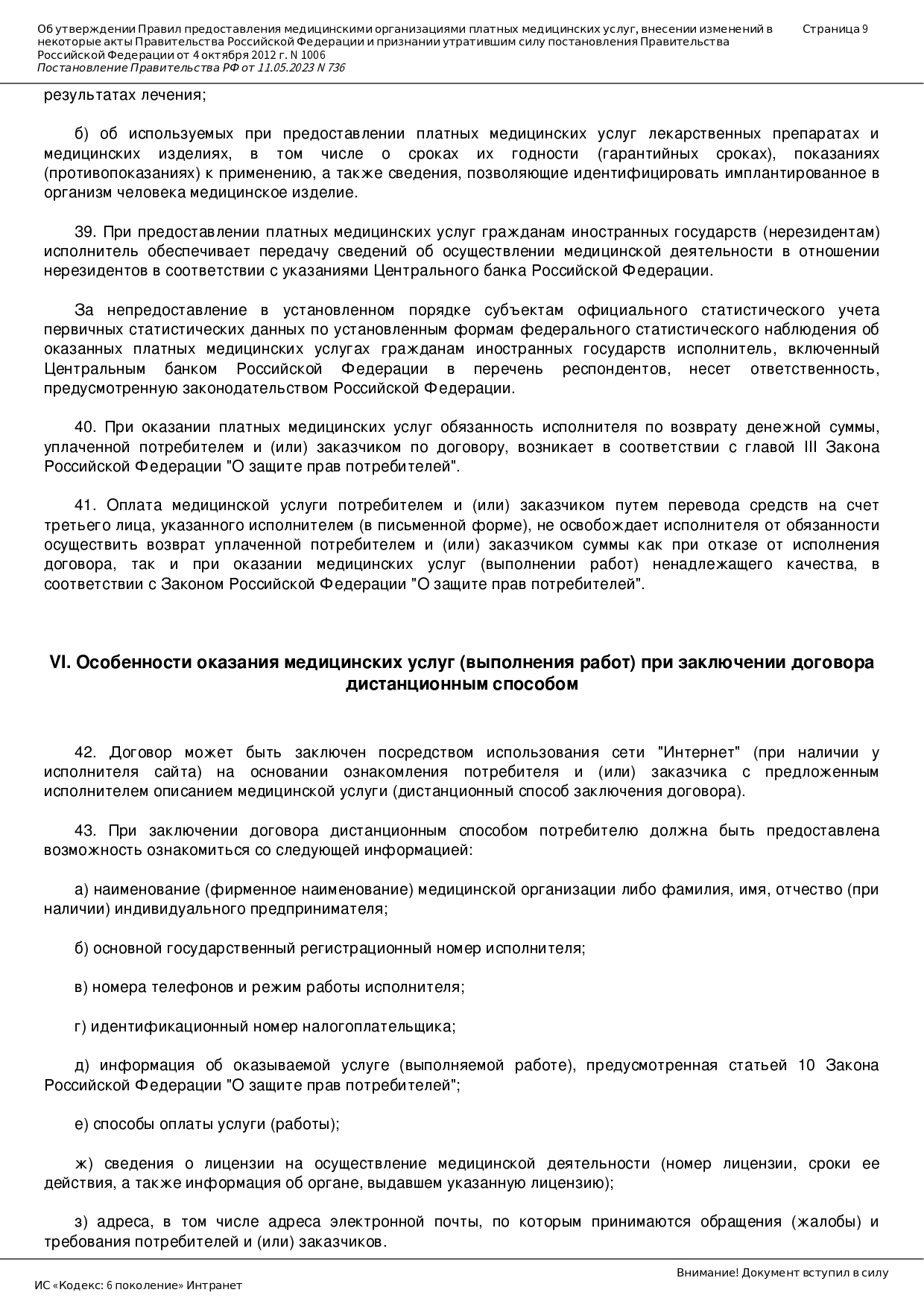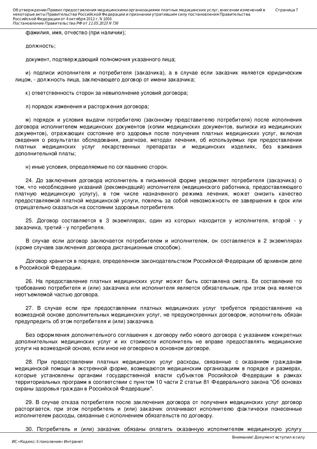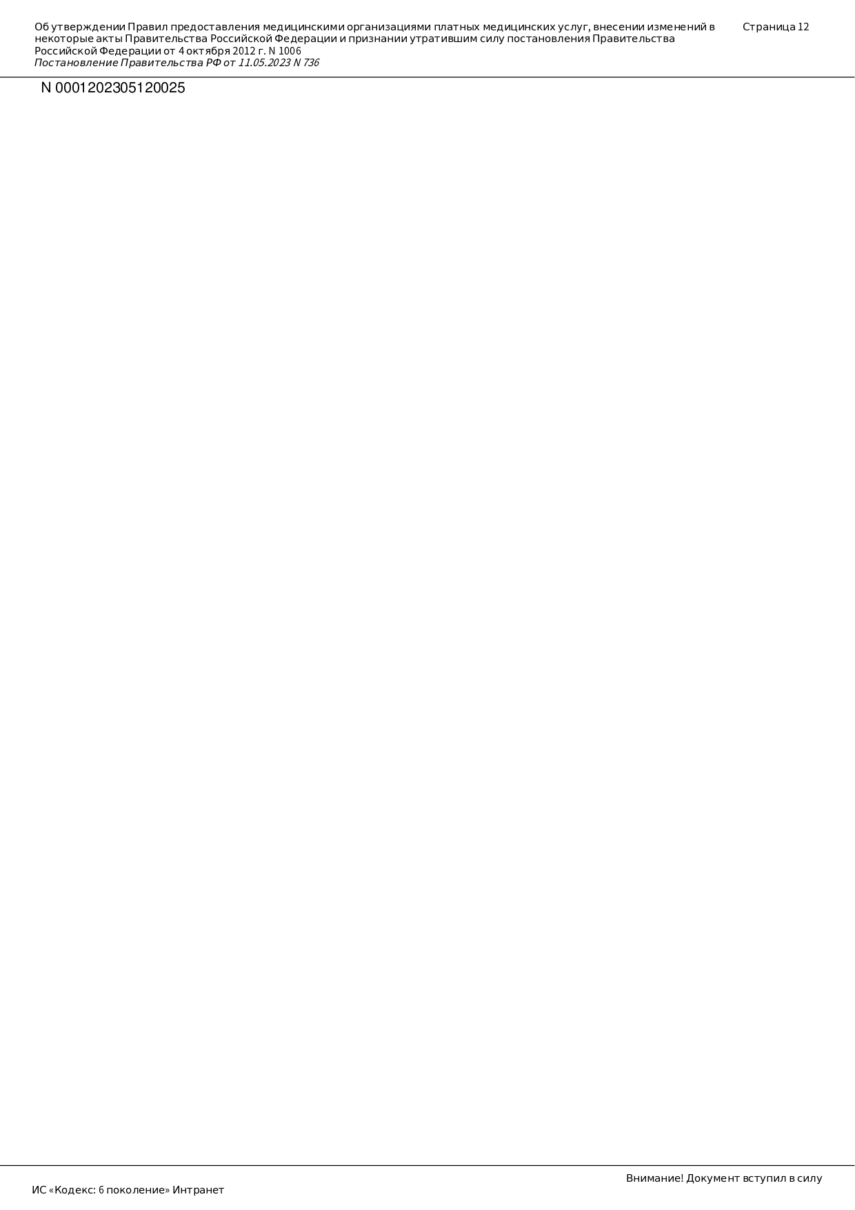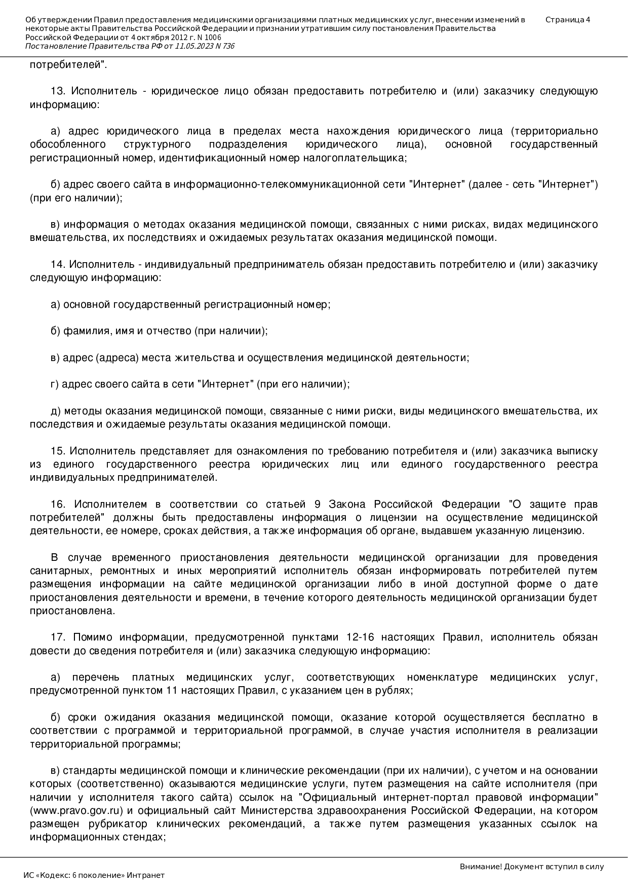Постановление Правительства РФ от 11.05.2023 № 736 Об утверждении Правил предоставления медицинскими организациями платных медицинских услуг