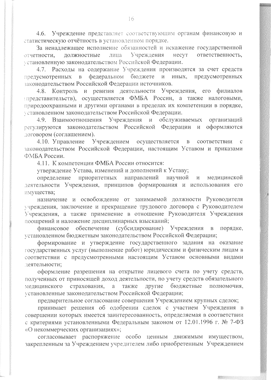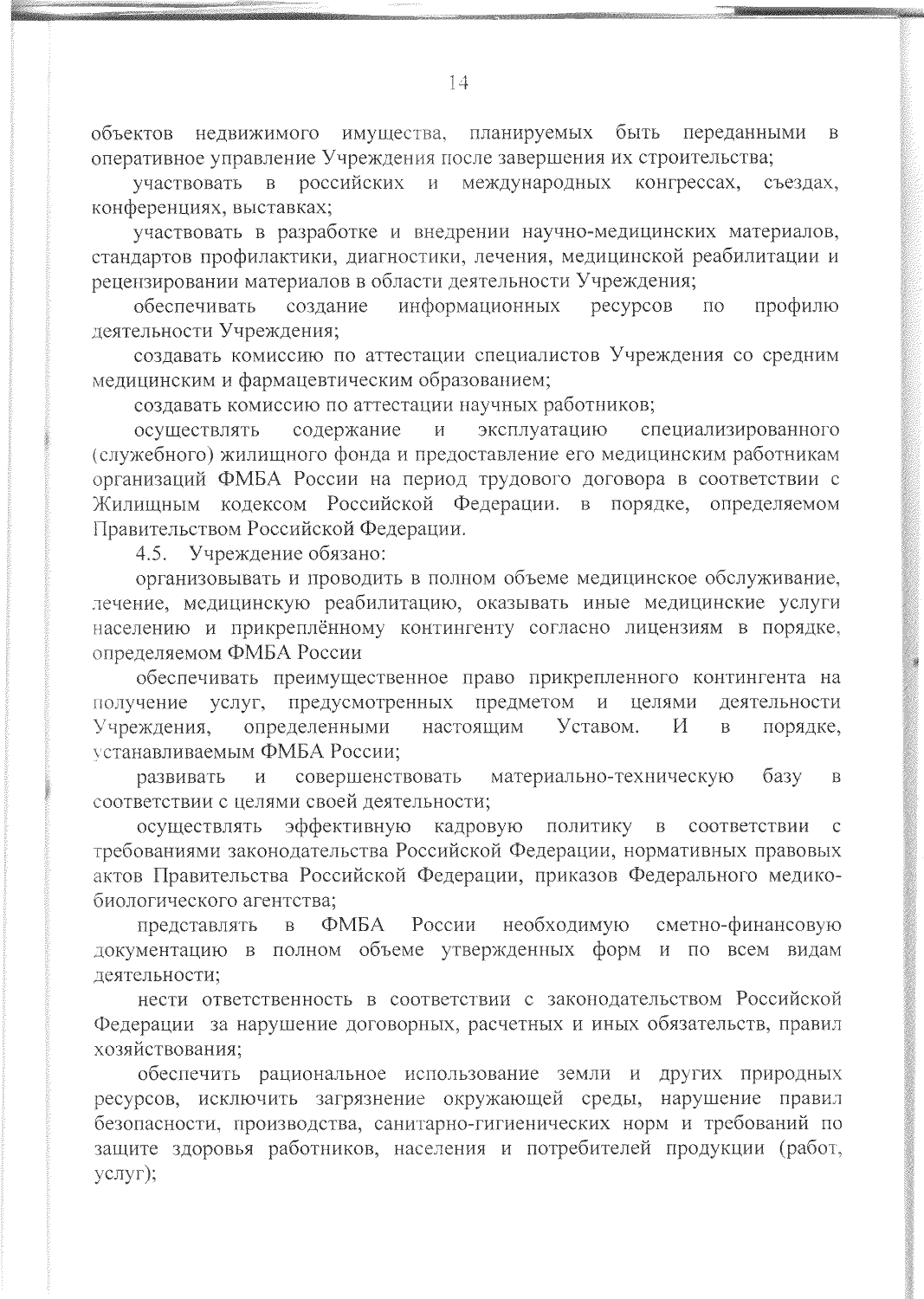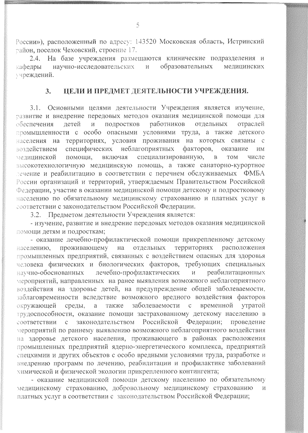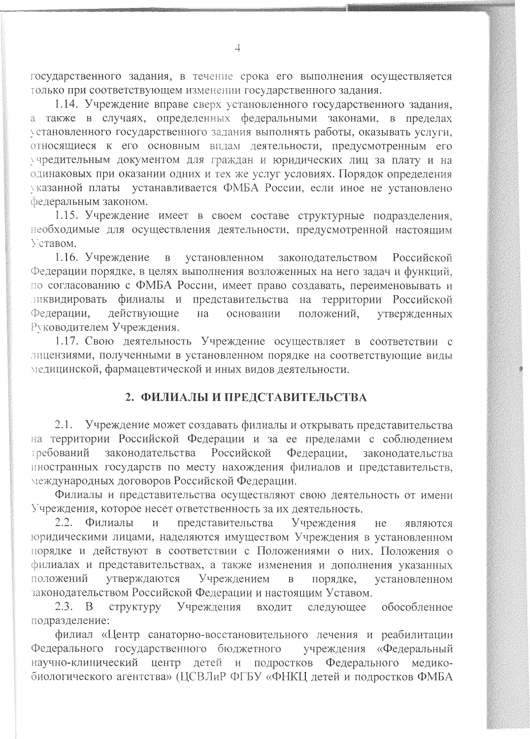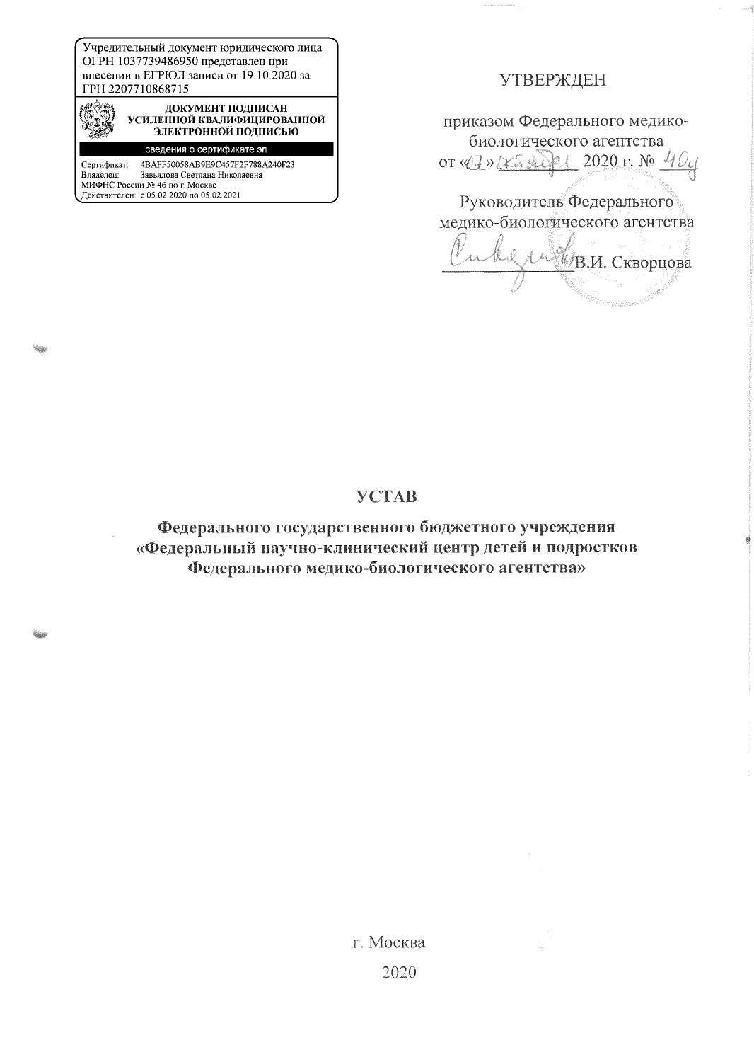 Устав ФГБУ «Федеральный научно-клинический центр детей и подростков Федерального медико-биологического агентства»