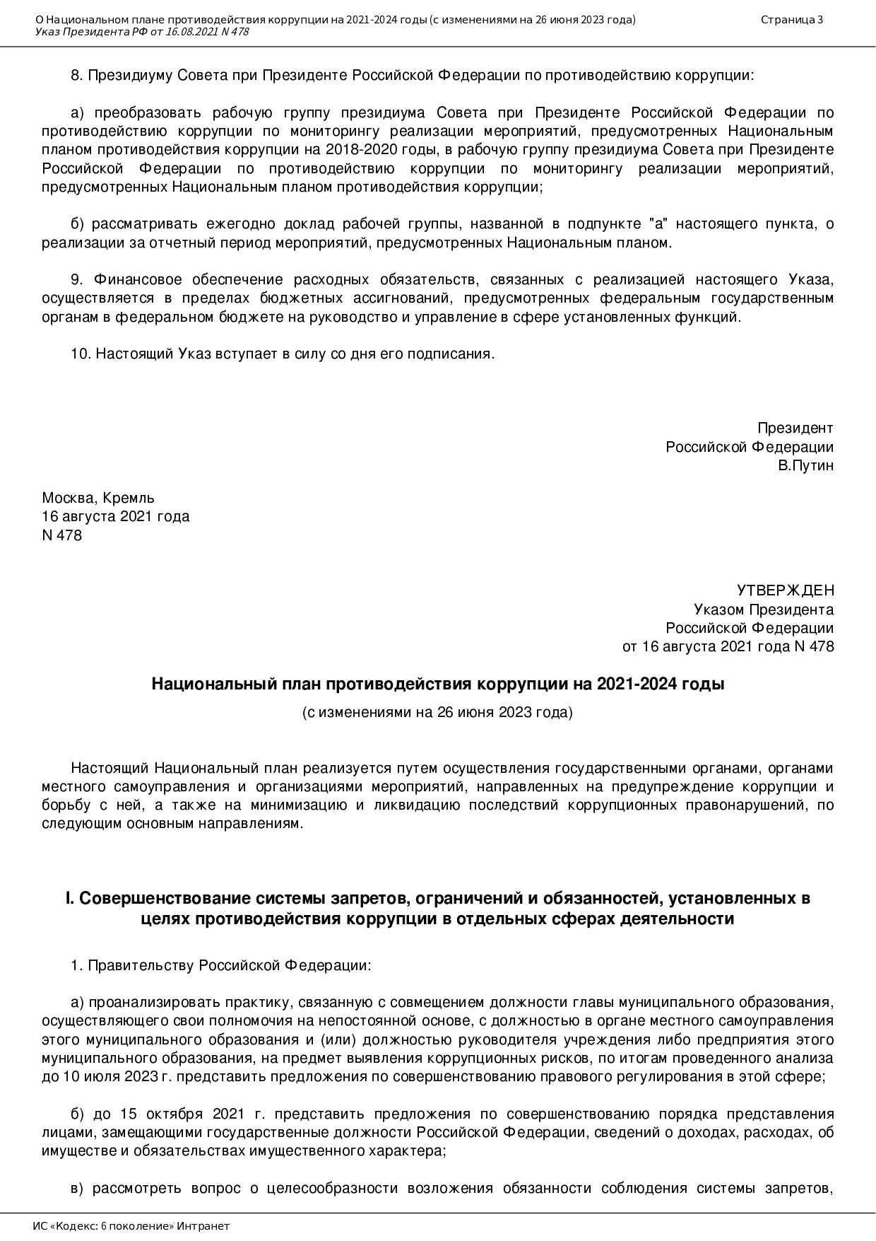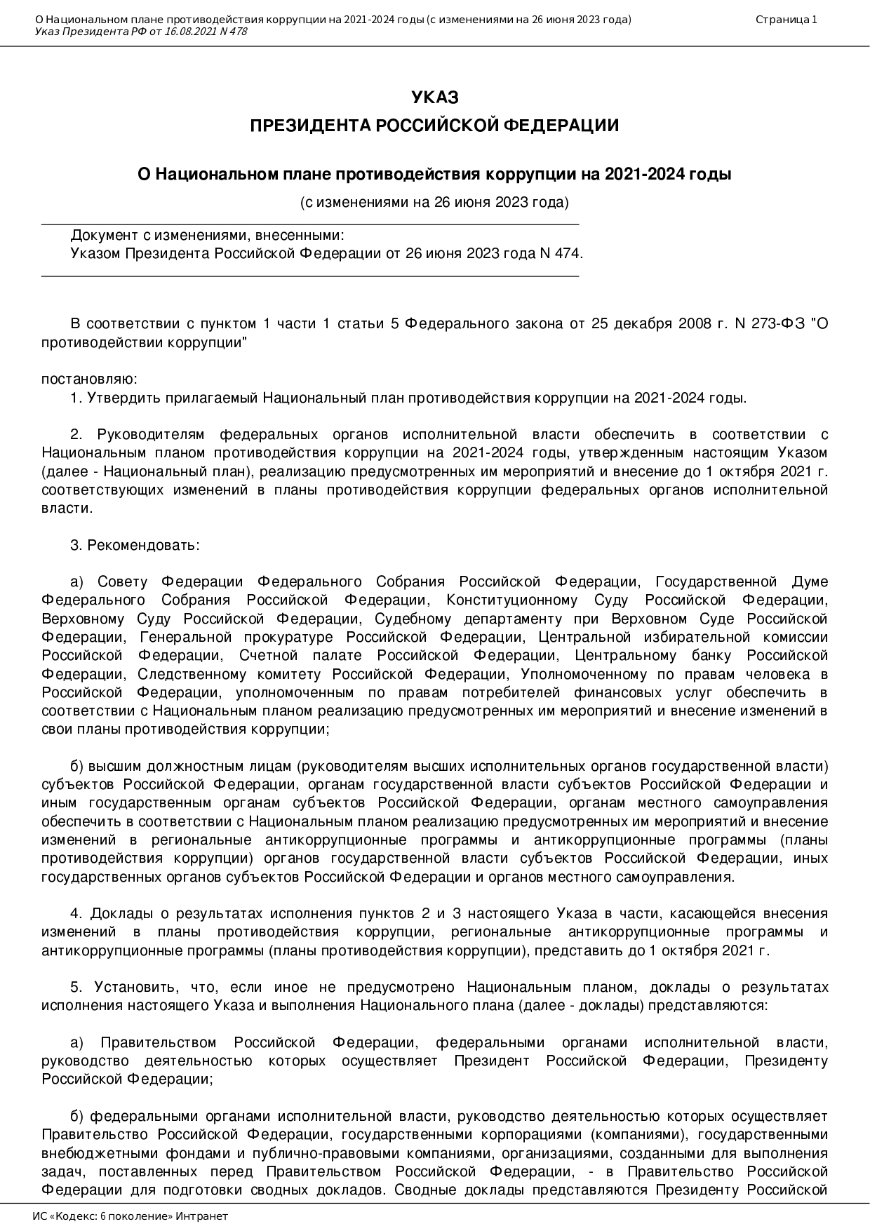 Указ Президента РФ О Национальном плане противодействия коррупции на 2021-2024 годы